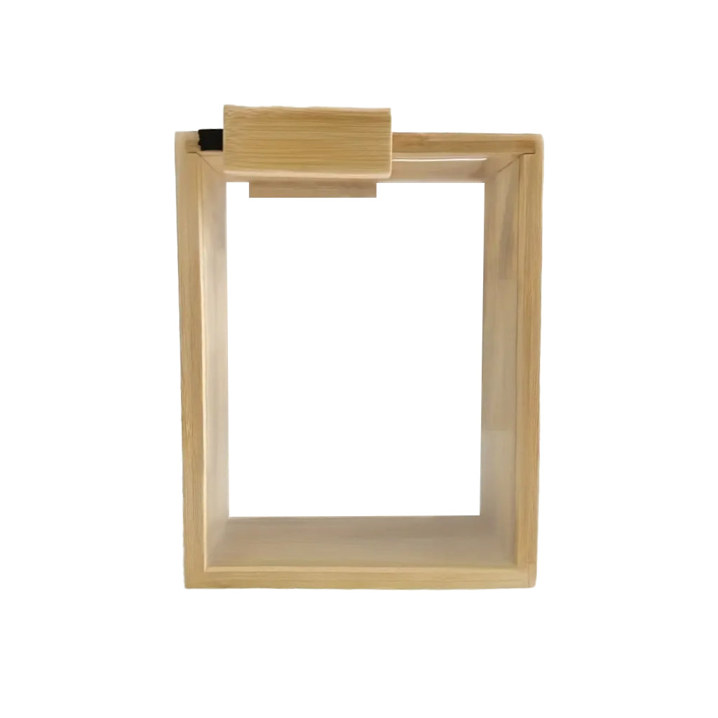 - Materiales: acrílico transparente de alta resistencia y tapa de bambú natural