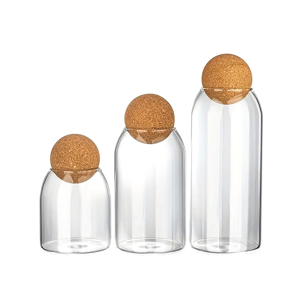 - Material premium: vidrio de borosilicato con tapas de corcho natural