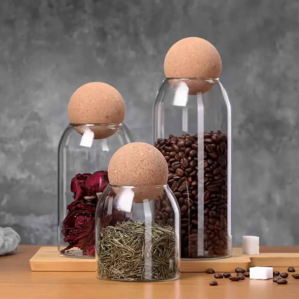 Mantén tus espacios ordenados con estilo gracias a este set de 3 frascos de vidrio con tapa de corcho, perfectos para almacenar ingredientes de cocina, cereales, café, frutos secos o productos de limpieza. Su diseño transparente permite ver el contenido fácilmente, mientras que las tapas de corcho herméticas conservan todo fresco y protegido. Fabricados en vidrio de borosilicato duradero, combinan funcionalidad y estética natural, aportando un toque decorativo a cualquier cocina, despensa o zona de lavandería.