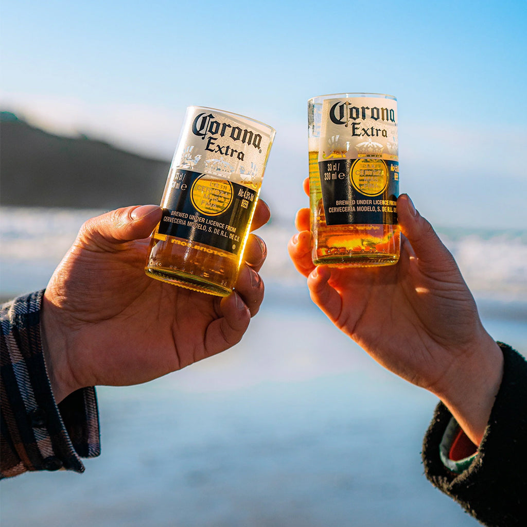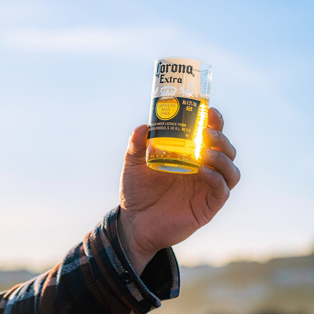 Cada vaso Corona ha sido elaborado artesanalmente a partir de botellas originales, seleccionadas cuidadosamente para conservar su icónico estampado sin imperfecciones. Este set forma parte del proyecto que promueve el reciclaje creativo y el consumo responsable. Al elegir estos vasos, estás contribuyendo al ahorro energético: por cada vaso producido se ahorra la energía equivalente a una bombilla de 110 W encendida durante 4 días. Las dimensiones pueden variar ligeramente, ya que no todas las botellas son iguales, lo que hace que cada pieza sea única y auténtica.