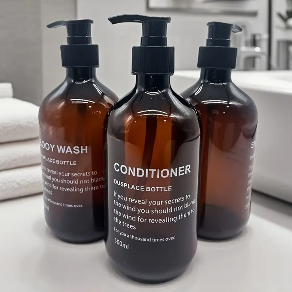 Añade estilo y orden a tu baño con esta botella dispensadora color ámbar de 500 ml, ideal para shampoo, acondicionador o jabón líquido. Fabricada en plástico resistente, cuenta con una bomba dosificadora de alta precisióny etiqueta impresa resistente al agua, que mantiene su aspecto impecable incluso en ambientes húmedos. Su diseño recargable, duradero y elegante aporta un toque moderno y uniforme a cualquier espacio, siendo perfecta para el hogar, hoteles o spas.