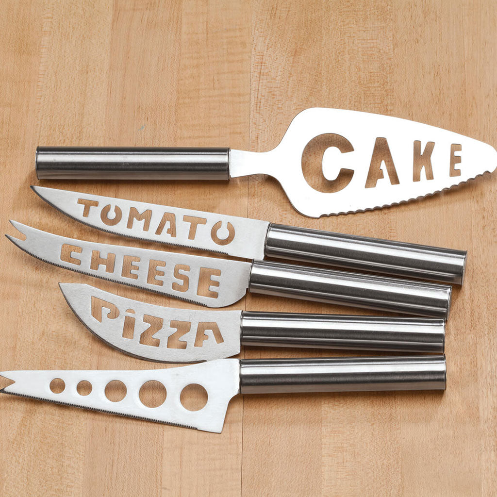- Incluye: 5 accesorios (4 cuchillos y 1 espátula para torta)