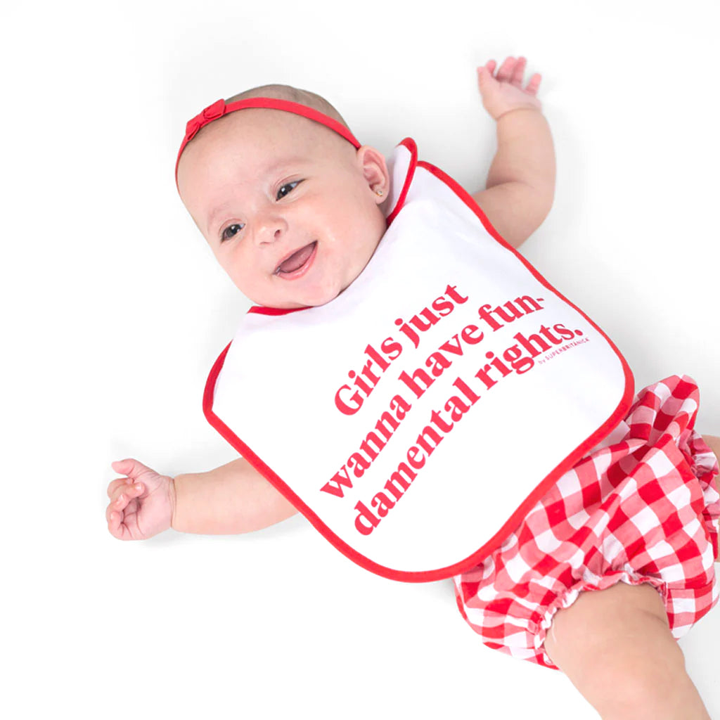 Oh, daddy dear, you know you're still number one but girls, they wanna have fun. Babero inspirado en la canción Girls Just Wanna Have Fun, de Cyndi Lauper, todo un himno de la liberación femenina en los 80.